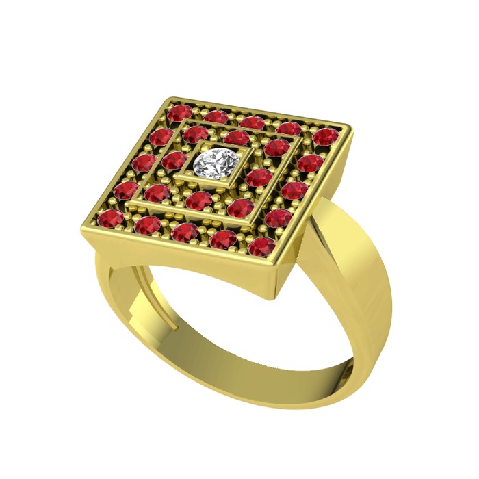 Beyaz zirkon ve garnet 14 ayar altın yüzük