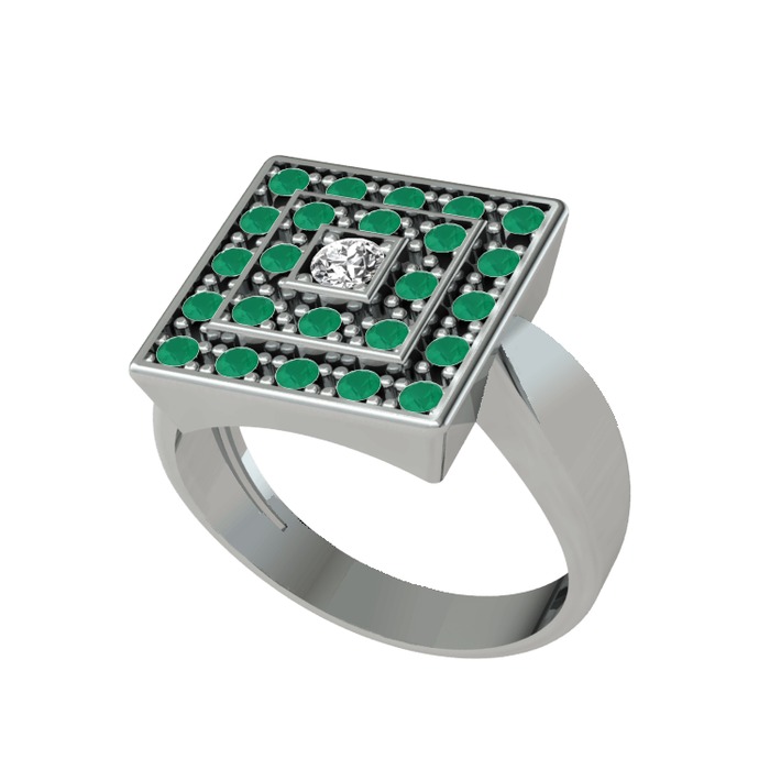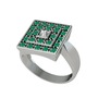 Beyaz zirkon ve kök zümrüt 8 ayar beyaz altın yüzük