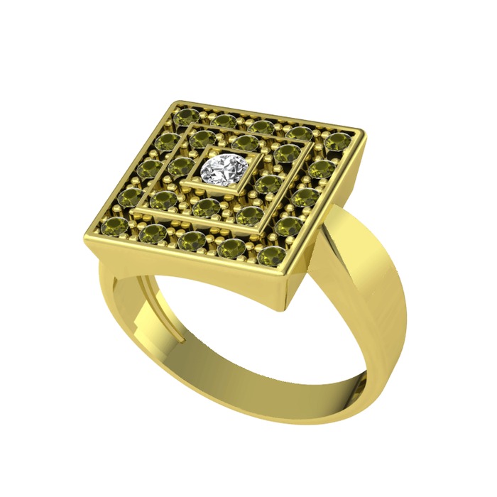 Beyaz zirkon ve peridot 18 ayar altın yüzük