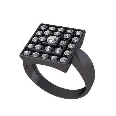 Beyaz zirkon ve pırlanta 925 ayar siyah rodyum kaplama gümüş yüzük (0.48 karat)