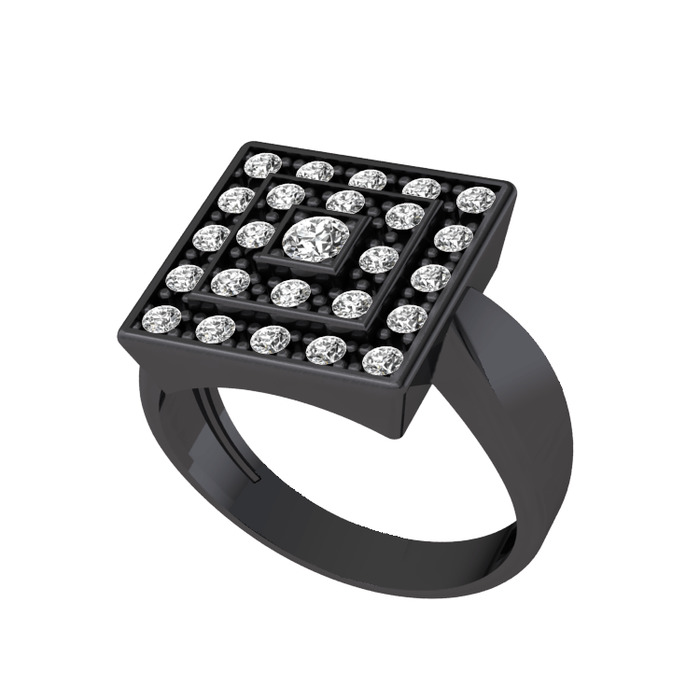 Beyaz zirkon 925 ayar siyah rodyum kaplama gümüş yüzük