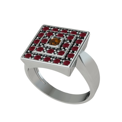 Dumanlı kuvars ve kök yakut 8 ayar beyaz altın yüzük