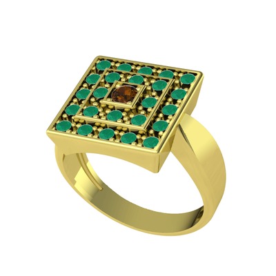 Dumanlı kuvars ve kök zümrüt 8 ayar altın yüzük