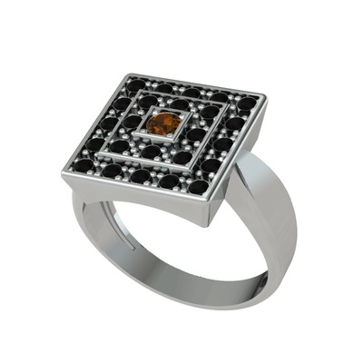 Dumanlı kuvars ve siyah zirkon 14 ayar beyaz altın yüzük