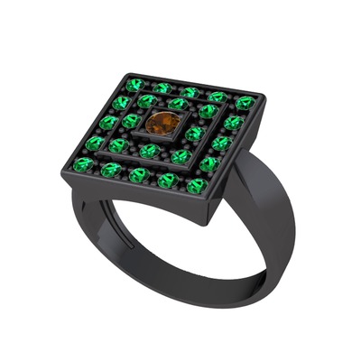Dumanlı kuvars ve yeşil kuvars 925 ayar siyah rodyum kaplama gümüş yüzük