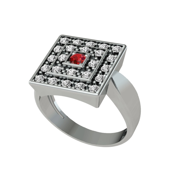 Garnet ve beyaz zirkon 8 ayar beyaz altın yüzük