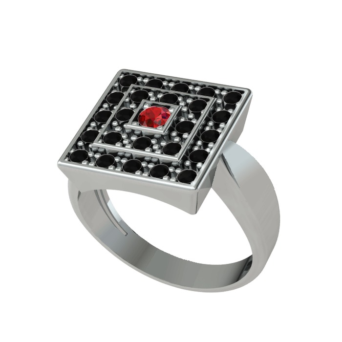 Garnet ve siyah zirkon 18 ayar beyaz altın yüzük
