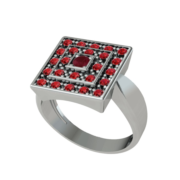 Kök yakut ve garnet 8 ayar beyaz altın yüzük