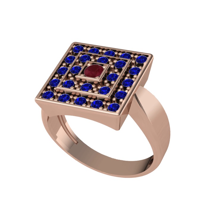 Kök yakut ve lab safir 14 ayar rose altın yüzük