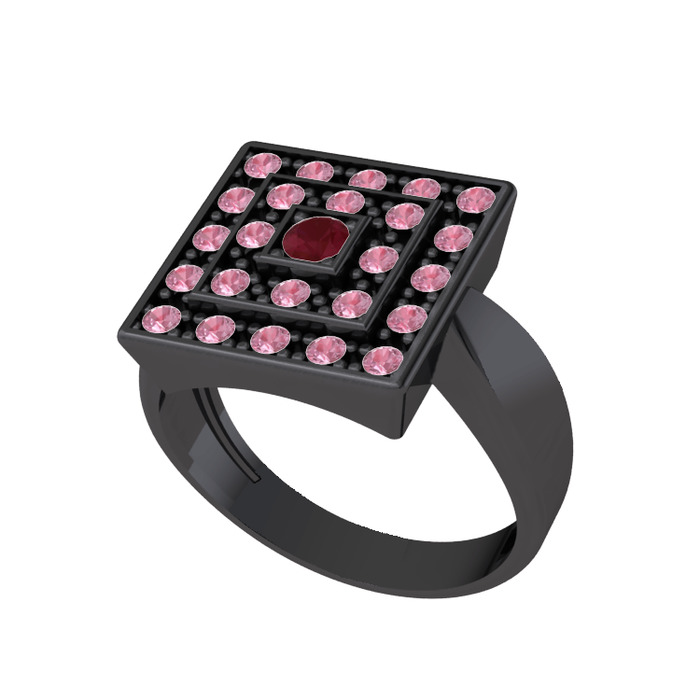 Kök yakut ve pembe kuvars 925 ayar siyah rodyum kaplama gümüş yüzük