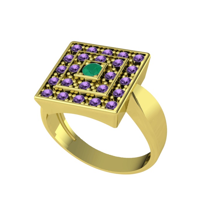 Kök zümrüt ve ametist 925 ayar altın kaplama gümüş yüzük