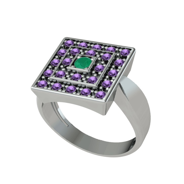 Kök zümrüt ve ametist 925 ayar gümüş yüzük