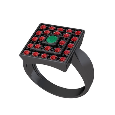 Kök zümrüt ve garnet 925 ayar siyah rodyum kaplama gümüş yüzük