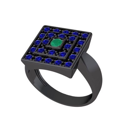 Kök zümrüt ve lab safir 925 ayar siyah rodyum kaplama gümüş yüzük