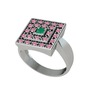 Kök zümrüt ve pembe kuvars 14 ayar beyaz altın yüzük