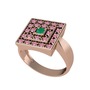Kök zümrüt ve pembe kuvars 14 ayar rose altın yüzük