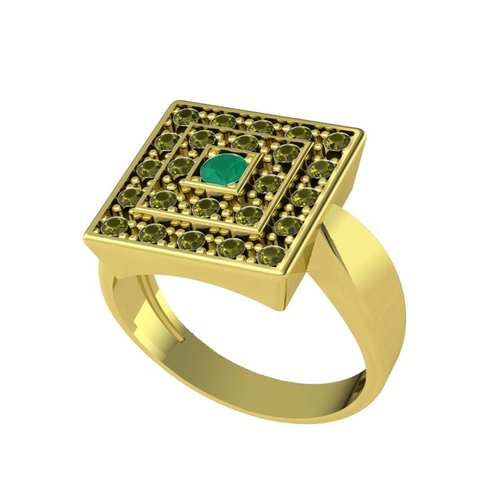 Kök zümrüt ve peridot 14 ayar altın yüzük