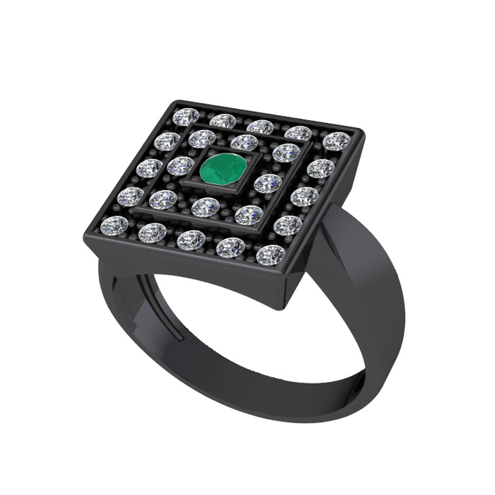 Kök zümrüt ve pırlanta 925 ayar siyah rodyum kaplama gümüş yüzük (0.48 karat)