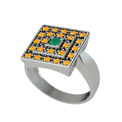 Kök zümrüt ve sitrin 925 ayar gümüş yüzük