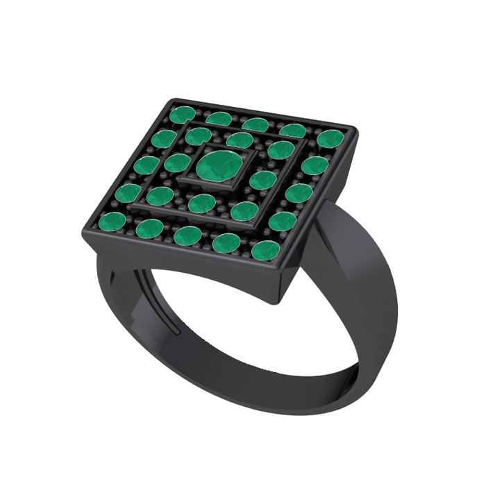 Kök zümrüt 925 ayar siyah rodyum kaplama gümüş yüzük