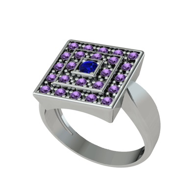Lab safir ve ametist 18 ayar beyaz altın yüzük