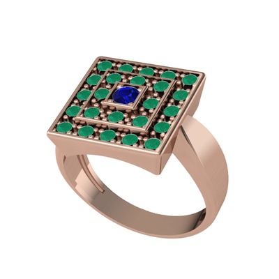 Lab safir ve kök zümrüt 8 ayar rose altın yüzük