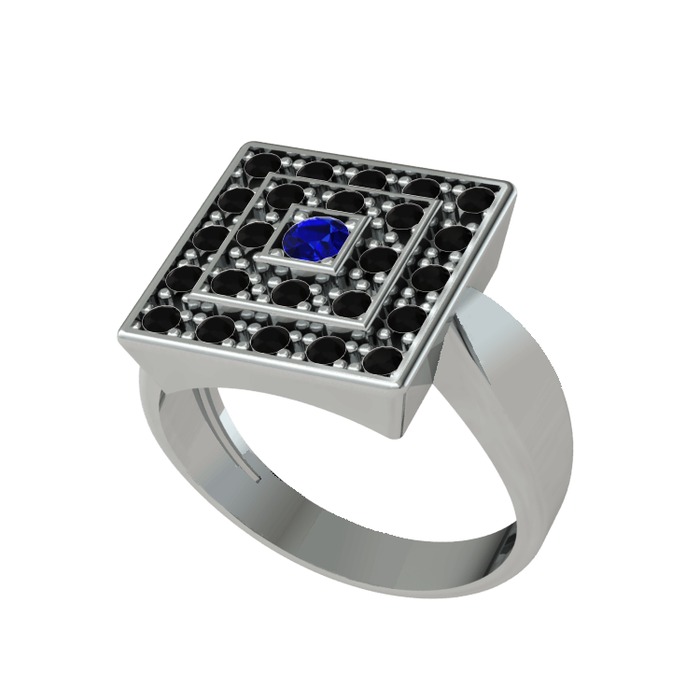 Lab safir ve siyah zirkon 8 ayar beyaz altın yüzük