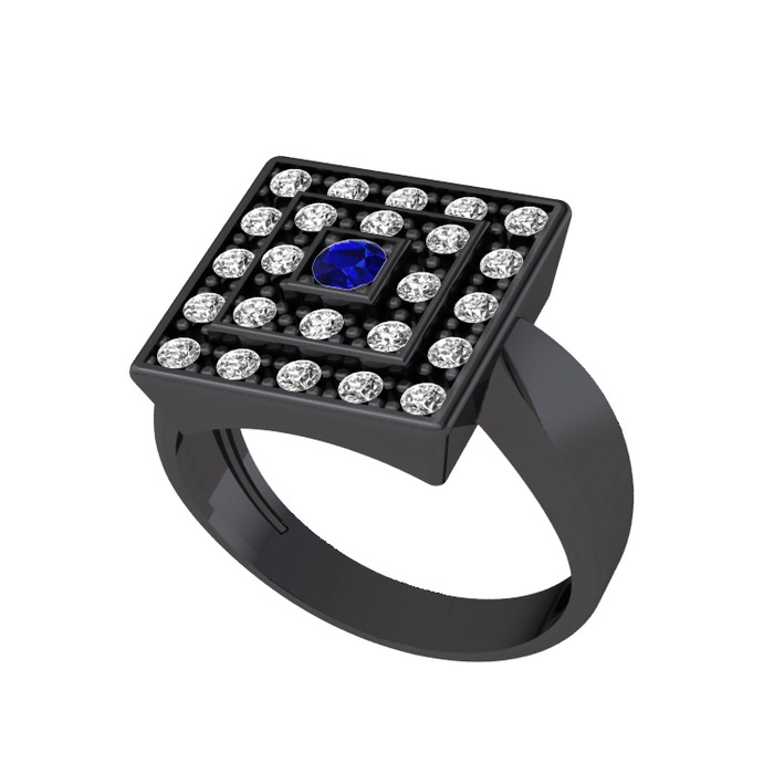 Lab safir ve swarovski 925 ayar siyah rodyum kaplama gümüş yüzük