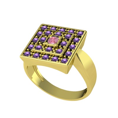 Pembe kuvars ve ametist 18 ayar altın yüzük