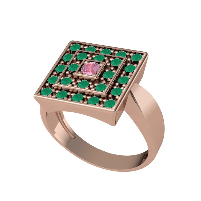 Pembe kuvars ve kök zümrüt 8 ayar rose altın yüzük