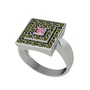 Pembe kuvars ve peridot 18 ayar beyaz altın yüzük