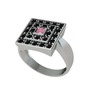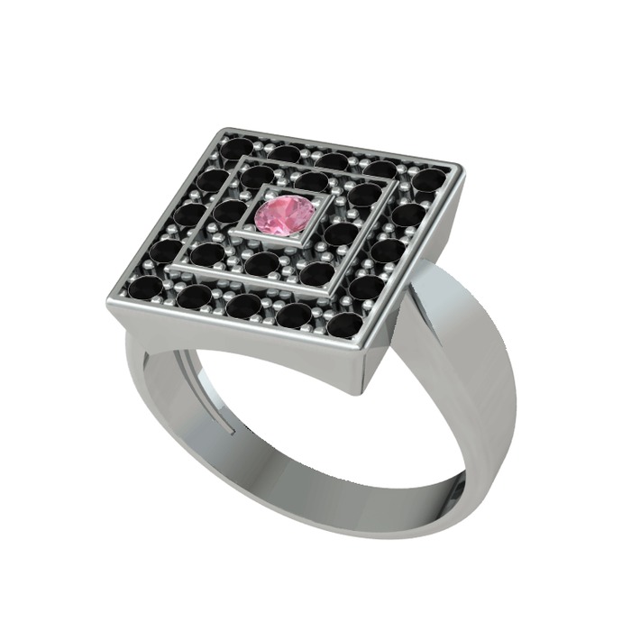 Pembe kuvars ve siyah zirkon 18 ayar beyaz altın yüzük