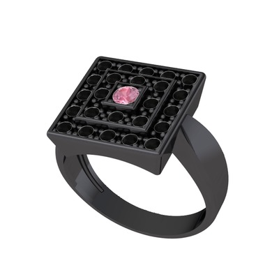 Pembe kuvars ve siyah zirkon 925 ayar siyah rodyum kaplama gümüş yüzük