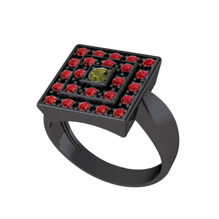 Peridot ve garnet 925 ayar siyah rodyum kaplama gümüş yüzük
