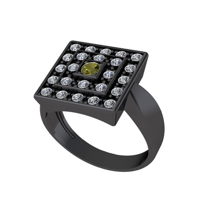 Peridot ve pırlanta 925 ayar siyah rodyum kaplama gümüş yüzük (0.48 karat)