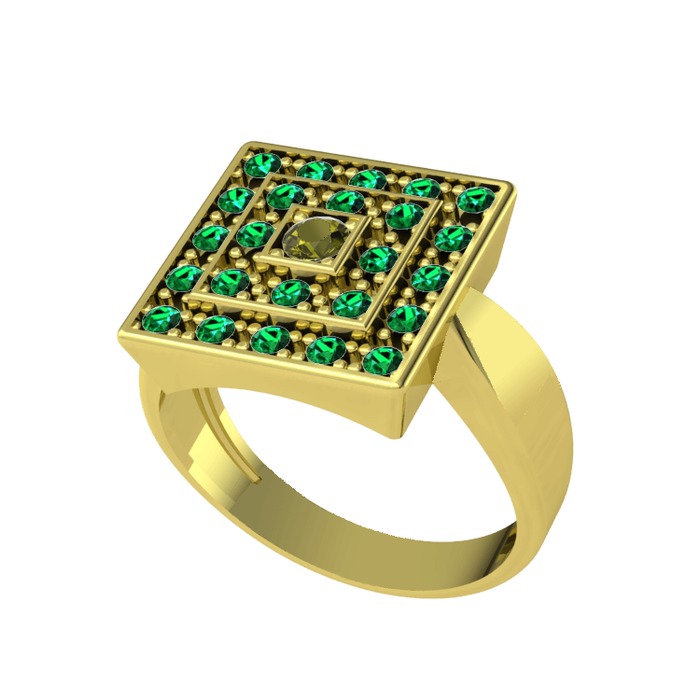 Peridot ve yeşil kuvars 14 ayar altın yüzük