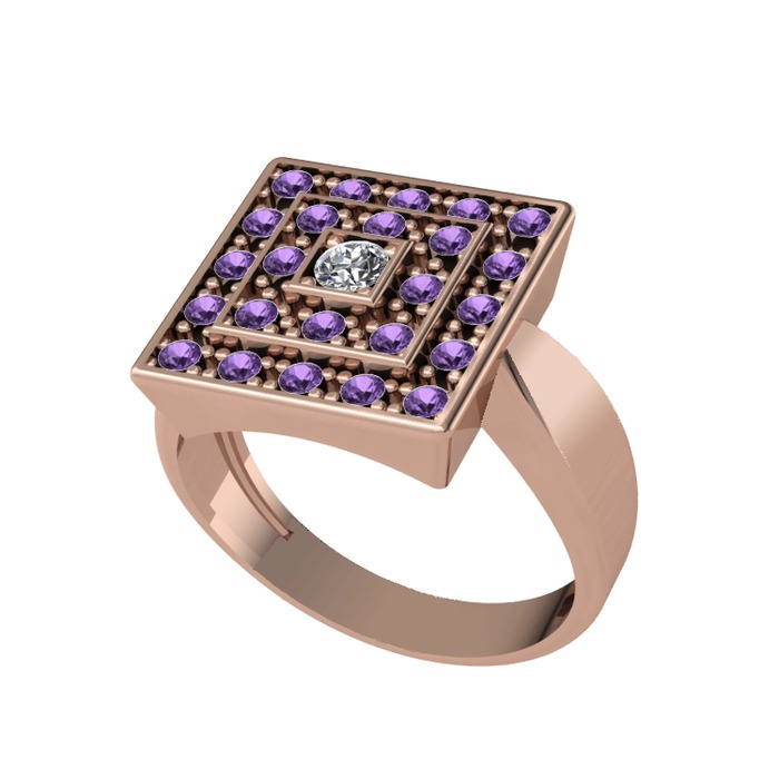 Pırlanta ve ametist 14 ayar rose altın yüzük (0.11 karat)