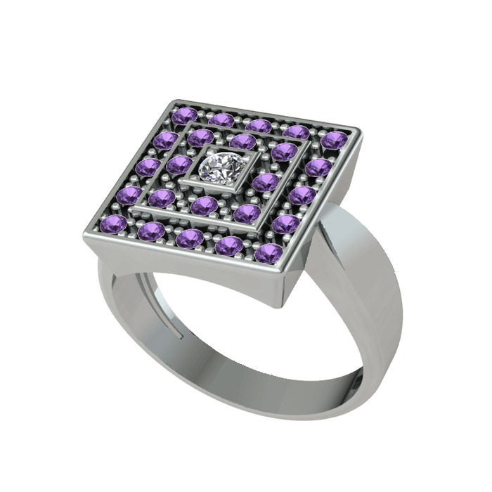 Pırlanta ve ametist 18 ayar beyaz altın yüzük (0.11 karat)