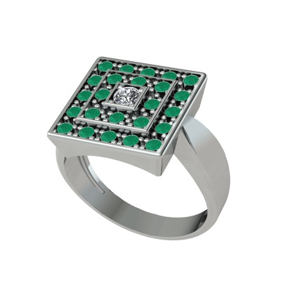 Pırlanta ve kök zümrüt 14 ayar beyaz altın yüzük (0.11 karat)