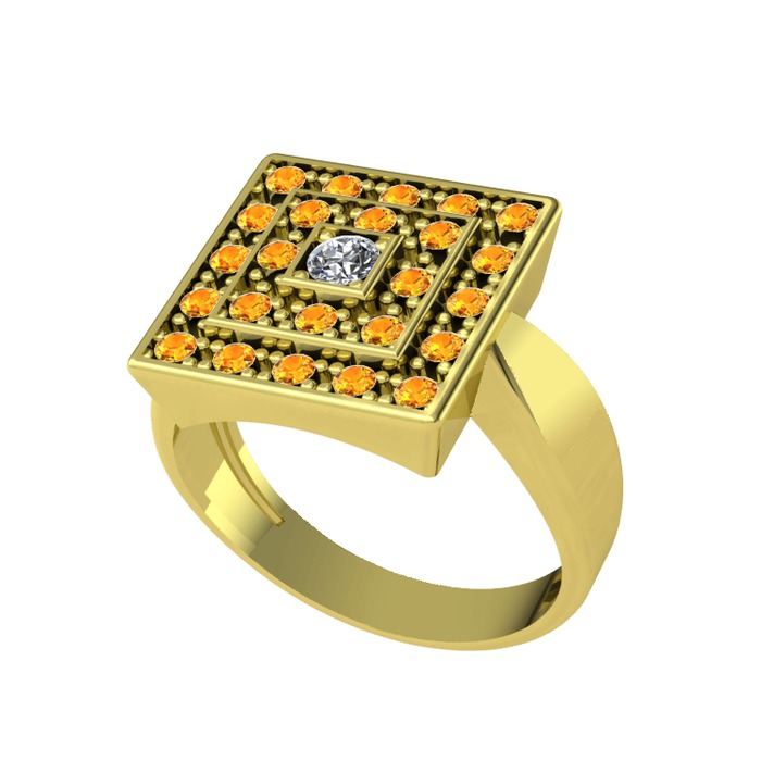 Pırlanta ve sitrin 8 ayar altın yüzük (0.11 karat)