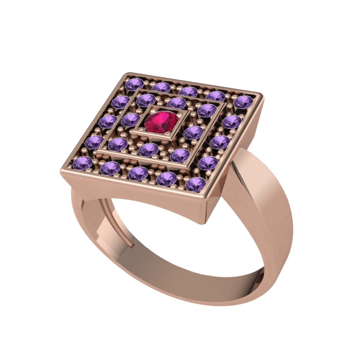 Rodolit garnet ve ametist 14 ayar rose altın yüzük