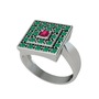 Rodolit garnet ve kök zümrüt 14 ayar beyaz altın yüzük
