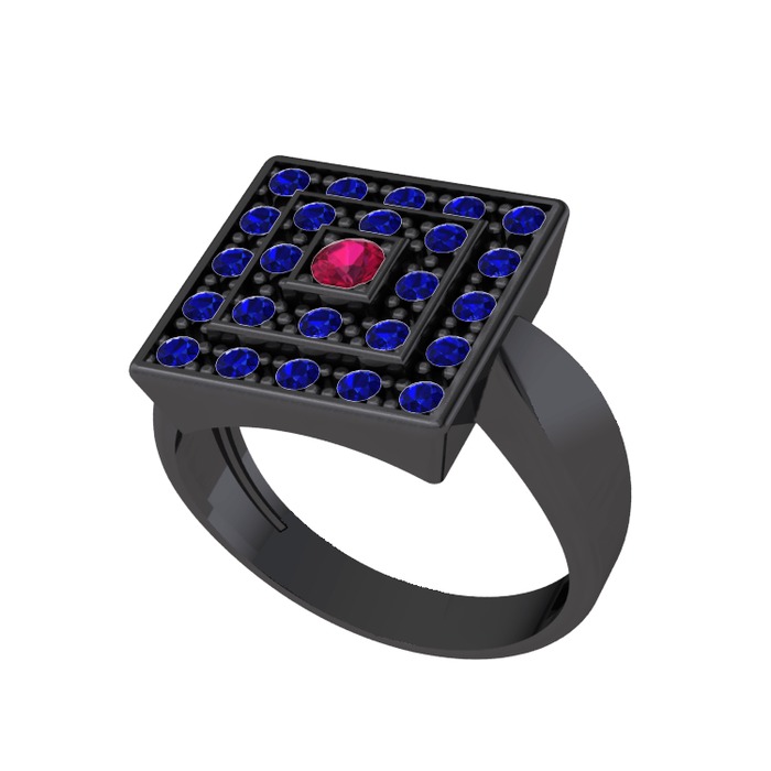 Rodolit garnet ve lab safir 925 ayar siyah rodyum kaplama gümüş yüzük