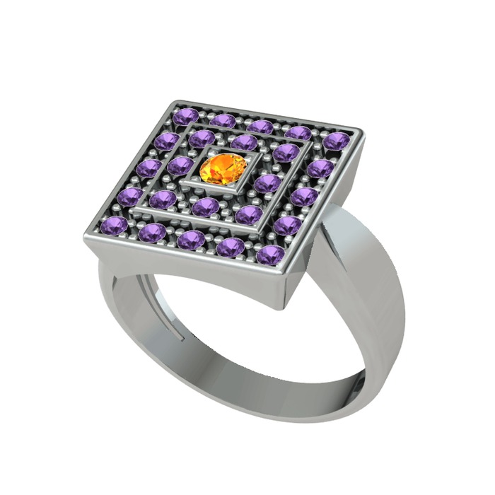Sitrin ve ametist 18 ayar beyaz altın yüzük