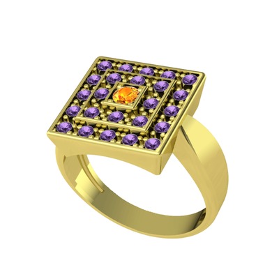 Sitrin ve ametist 925 ayar altın kaplama gümüş yüzük