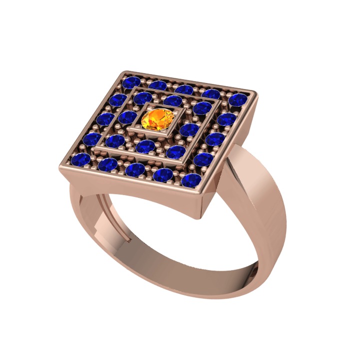 Sitrin ve lab safir 8 ayar rose altın yüzük