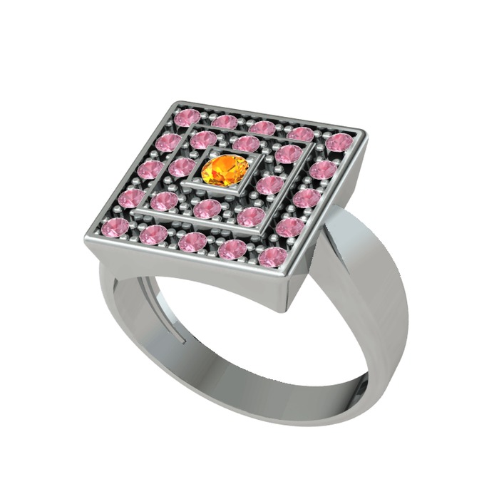Sitrin ve pembe kuvars 18 ayar beyaz altın yüzük