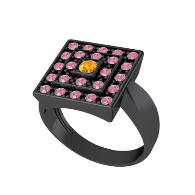 Sitrin ve pembe kuvars 925 ayar siyah rodyum kaplama gümüş yüzük
