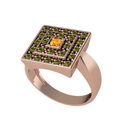 Sitrin ve peridot 14 ayar rose altın yüzük