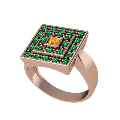 Sitrin ve yeşil kuvars 18 ayar rose altın yüzük